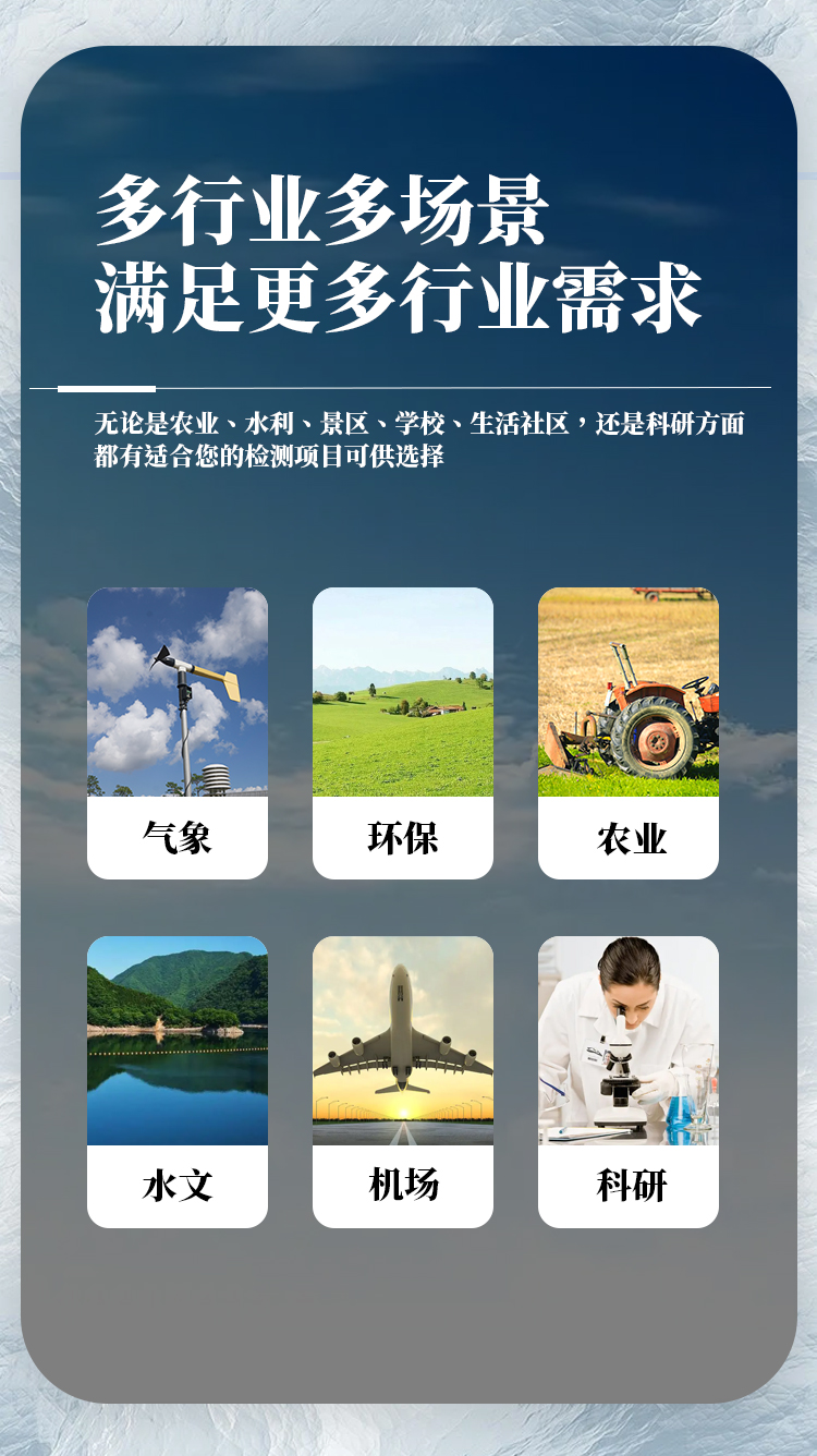 该设备创新性的采用十二要素一体式传感器,可对风速、风向、温度、湿度、气压、光学雨量、pm2.5、pm10、CO、NO2、SO2、O3等气象要素进行实时观测,可实现户外气象参数24小时连续在线监测,通过数字量通讯接口将十二项参数一次性输出给用户。